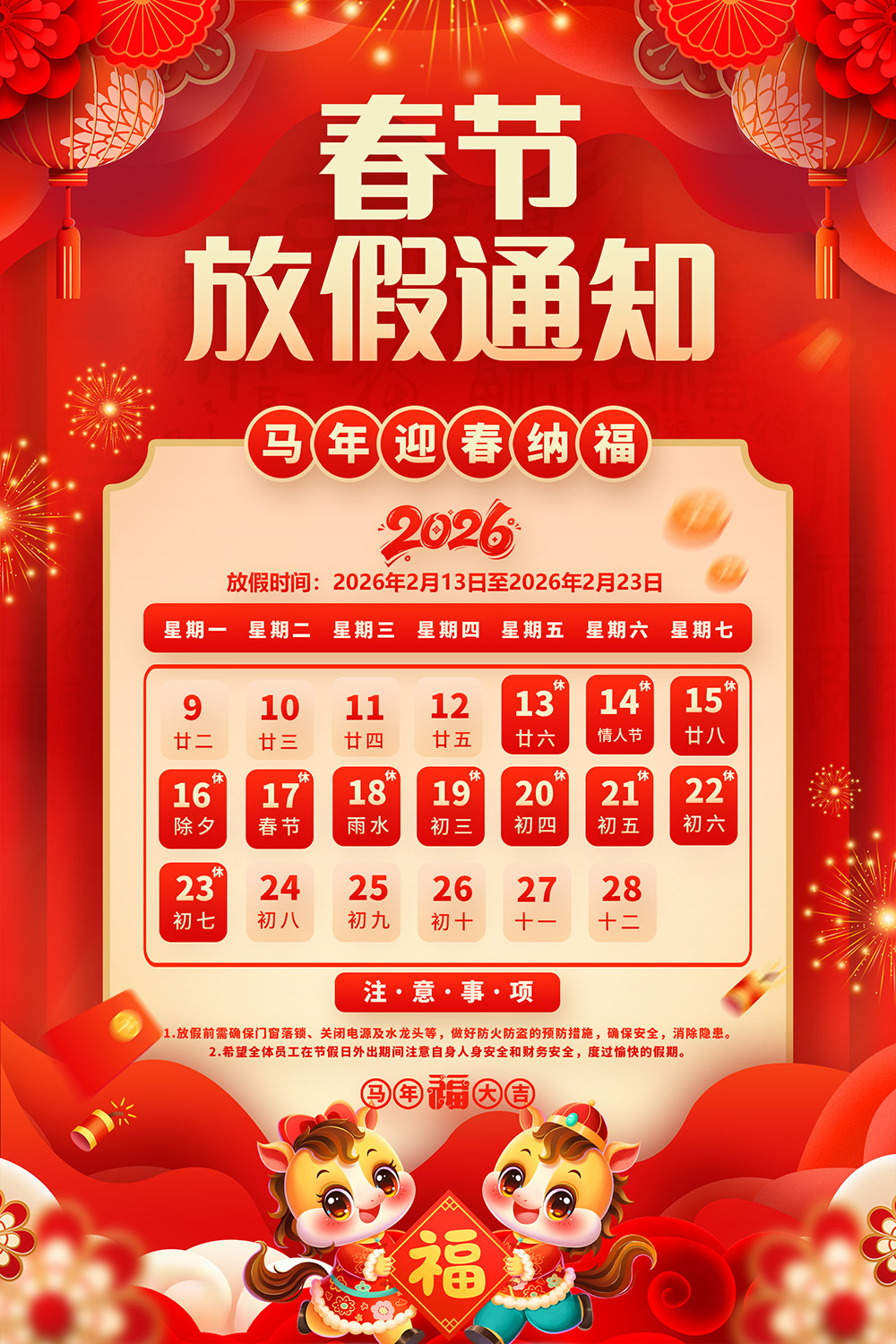 山东东达机电有限责任公司2026年春节放假通知
